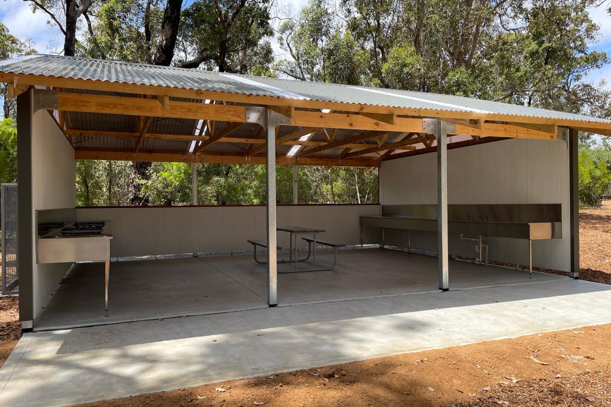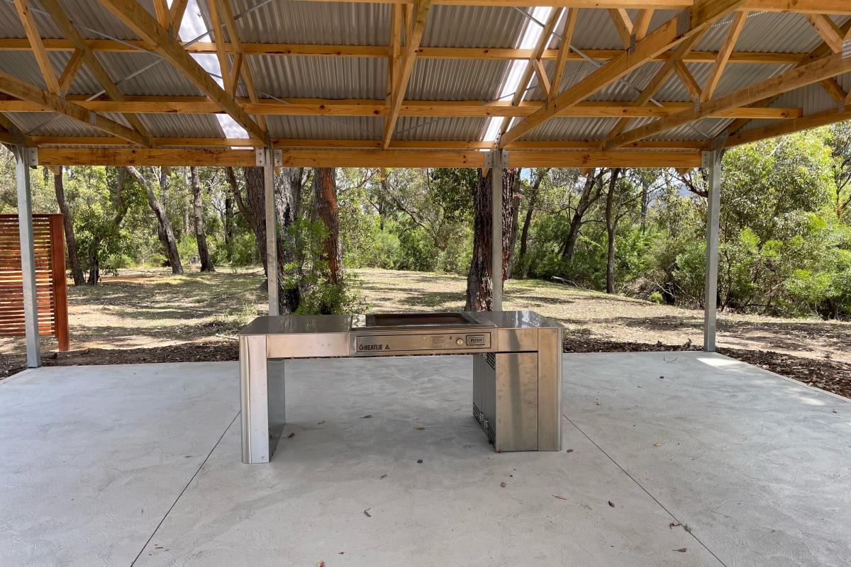 Sheltered gas barbecue, picnic tables and benches in the adjacent day-use area. Use of this facility is shared with day visitors.